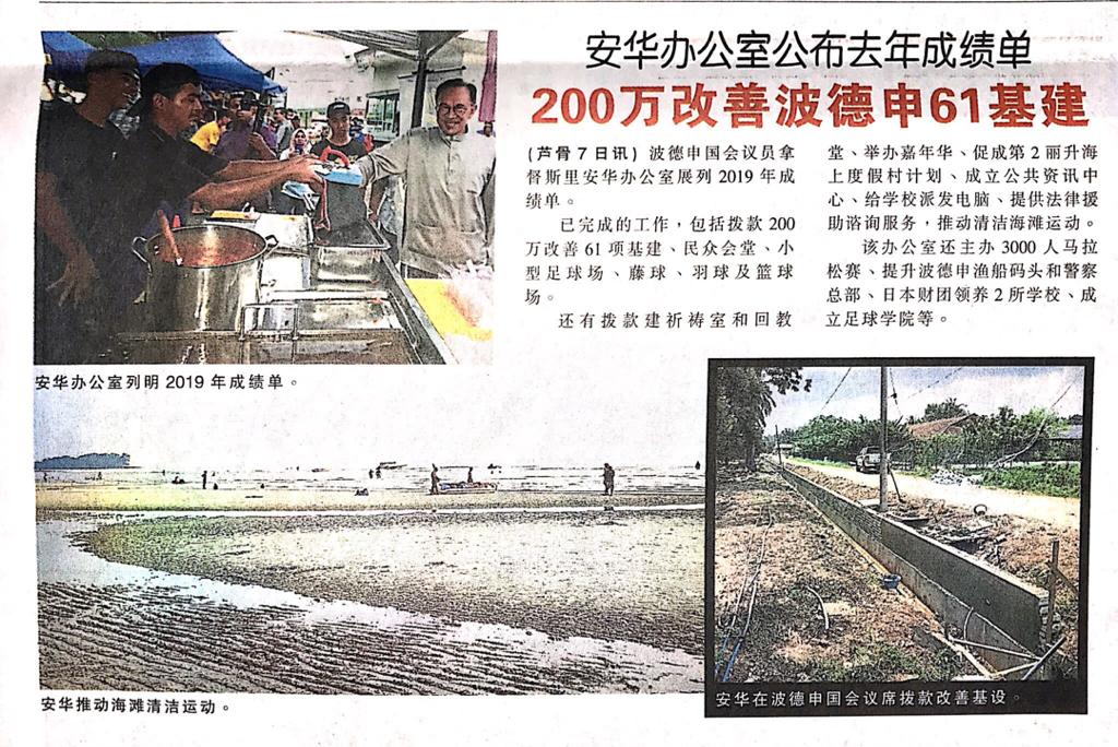 Tajuk :Port Dickson:Pejabat Ahli Parlimen Datuk Seri Anwar Ibrahim telah mengeluarkan kenyataan bahawa sejumlah RM2 juta peruntukan yang diguna bagi Projek Mesra Rakyat membabitkan 61 projek di Port Dickson sepanjang tahun lalu.
