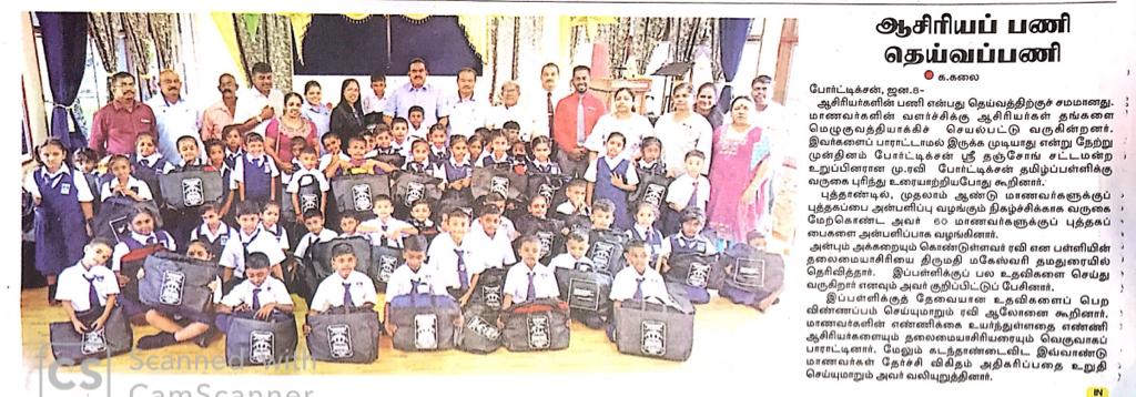Tajuk :Port Dickson:YB Tuan Ravi Munusamy telah menyampaikan sumbangan beg sekolah kepada pelajar tahun 1 di SJK(T) Port Dickson.