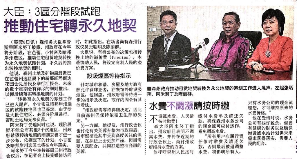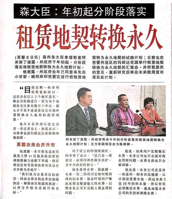 Tajuk :Seremban:Kerajaan negeri sudah mengenal pasti tanah pajak yang akan ditukar status menjadi hak milik kekal dan proses pertukaran status tanah bakal dilaksanakan bermula awal tahun ini.