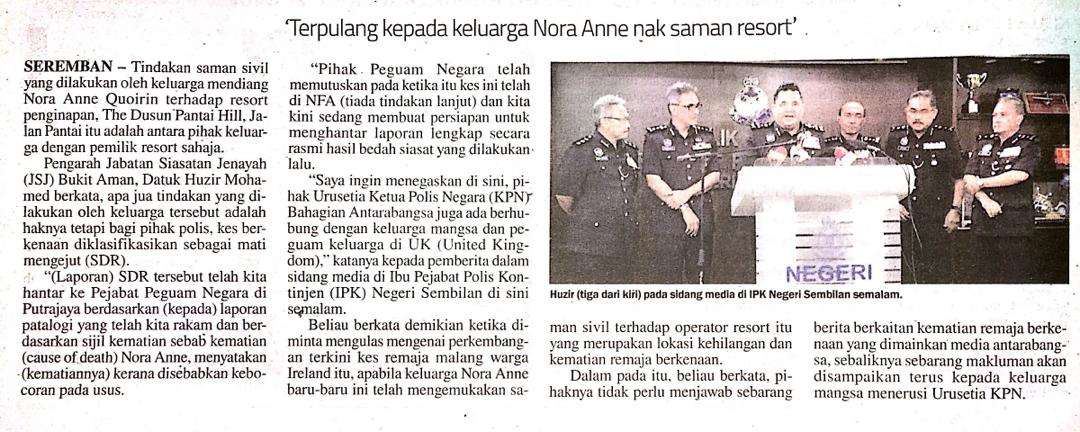 Tajuk :Terpulang kepada keluarga Nora Anne nak saman resort