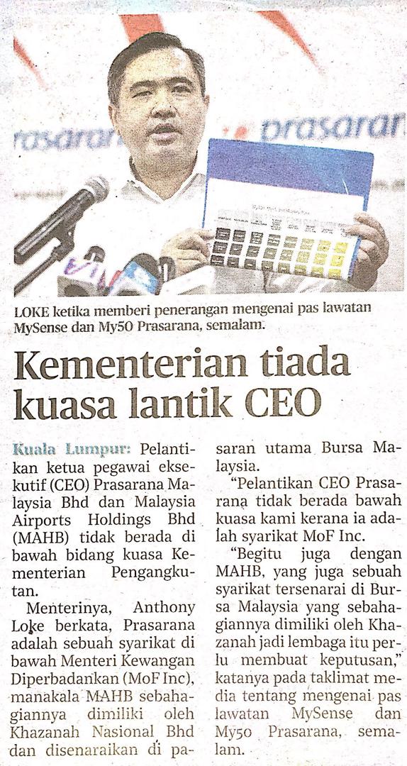 Tajuk :Kementerian tiada kuasa lantik CEO