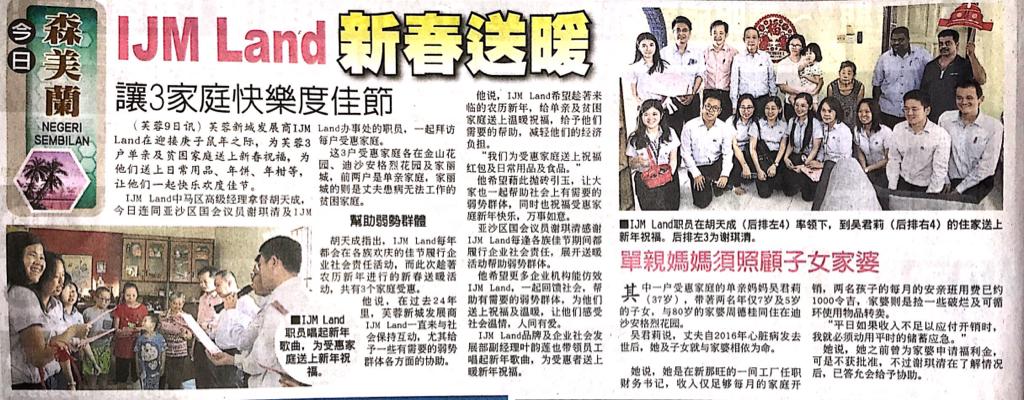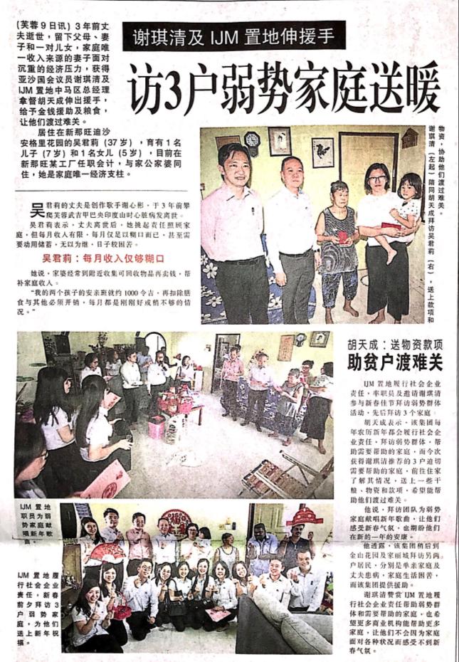 Tajuk :Seremban:YB Tuan Cha Kee Chin turut serta bersama pihak IJM Land Berhad membuat lawatan amal sempena sambutan Tahun Baru Cina yang bakal menjelang.