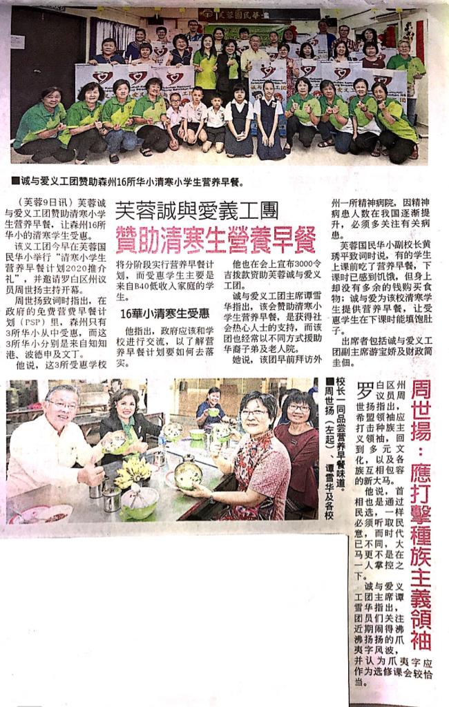 Tajuk :Seremban:YB Tuan Chew Seh Yong telah menghadiri Majlis Pelancaran Pelan Sarapan Sihat dan juga Sarapan Percuma anjuran Pertubuhan Komuniti Tersayang Seremban NS.