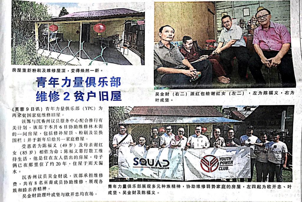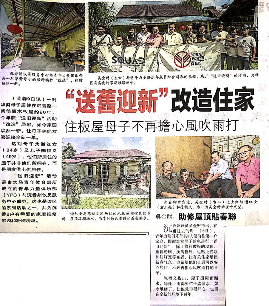 Tajuk :Seremban:YB Tuan Ng Chin Tsai menyertai Youth Power Club bergotong-royong membersihkan rumah dan juga menyampaikan sumbangan kepada keluarga tersebut bersempena sambutan Tahun Baru Cina.