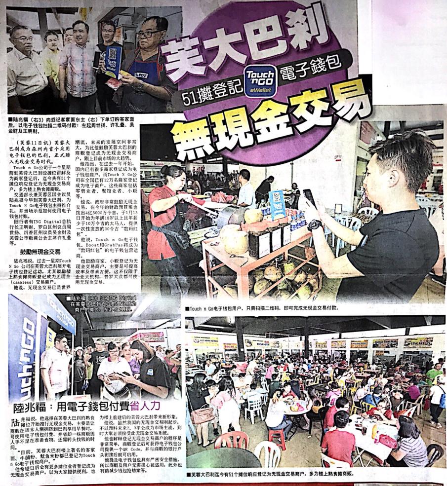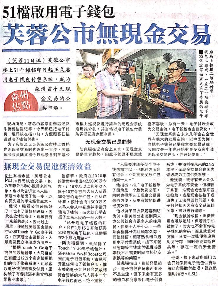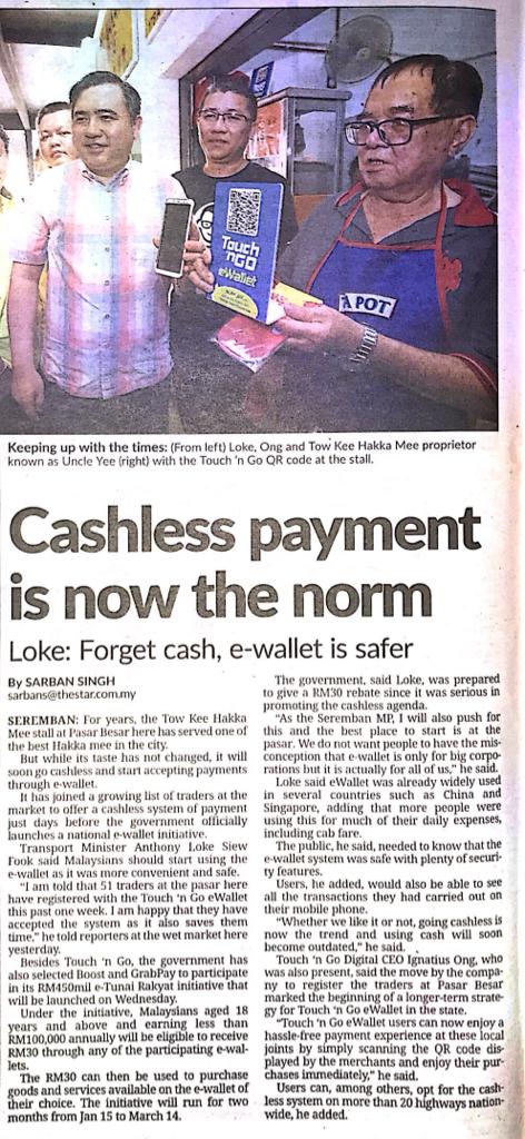 Tajuk :Seremban:YB Tuan Loke Siew Fook telah turun melawat Pasar Besar Seremban sempena mempromosikan penggunaan Touch n Go e-wallet.