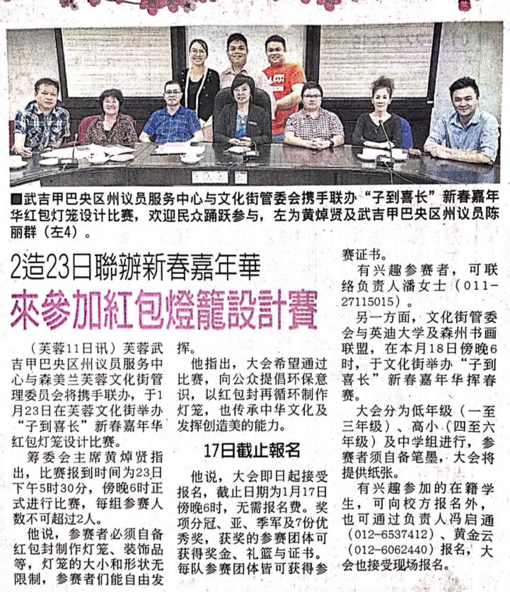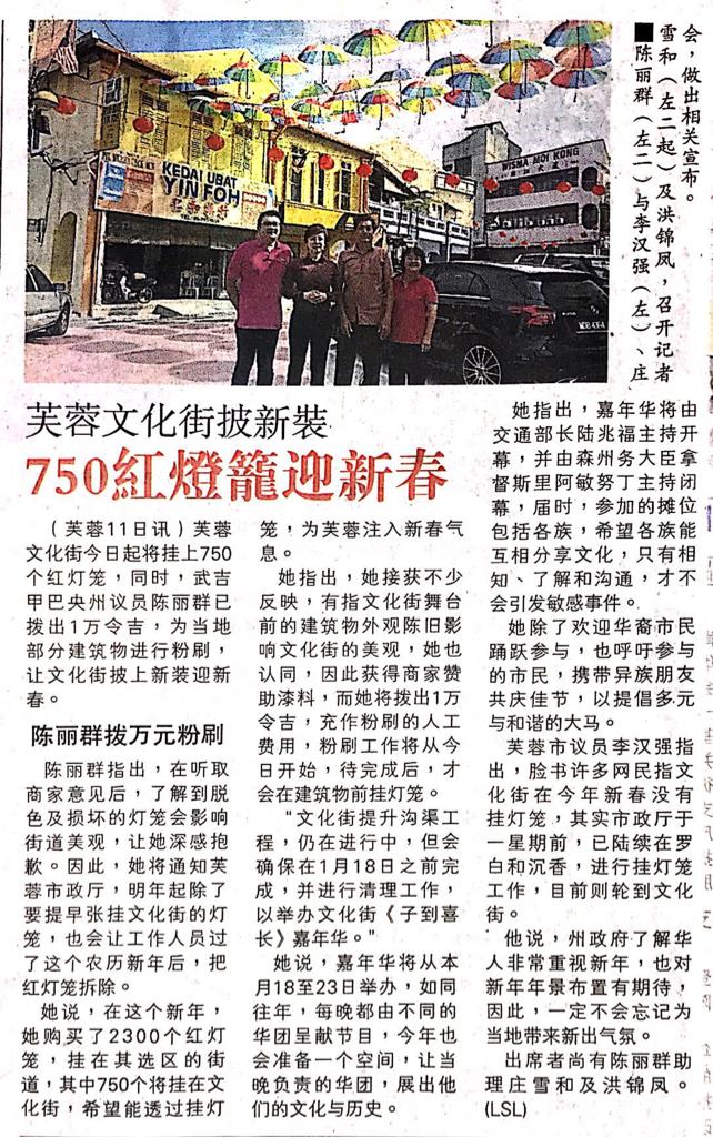 Tajuk :Seremban:YB Puan Nicole mempromosikan pertandingan Rekaan Tanglung sempena Karnival Tahun Baru Cina yang bakal berlangsung di Jalan Sungei Ujong Seremban.