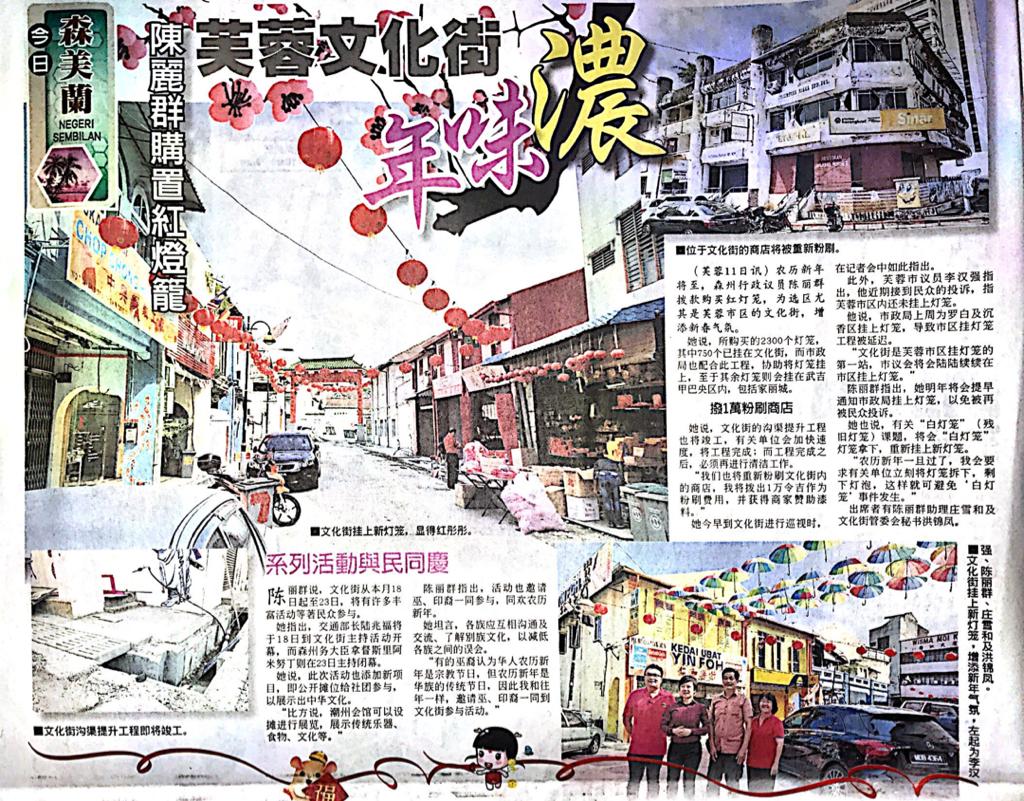 Tajuk :Seremban:YB Puan Nicole telah melakukan tinjauan pemasangan tanglung baru dan sidang media di Jalan Sungei Ujong Seremban.