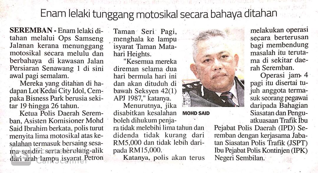 Tajuk :Enam lelaki tunggang motosikal secara bahaya ditahan