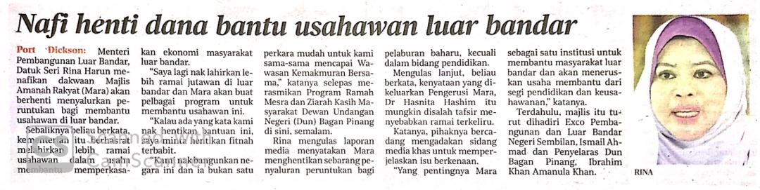 Tajuk :Nafi henti dana bantu usahawan luar bandar