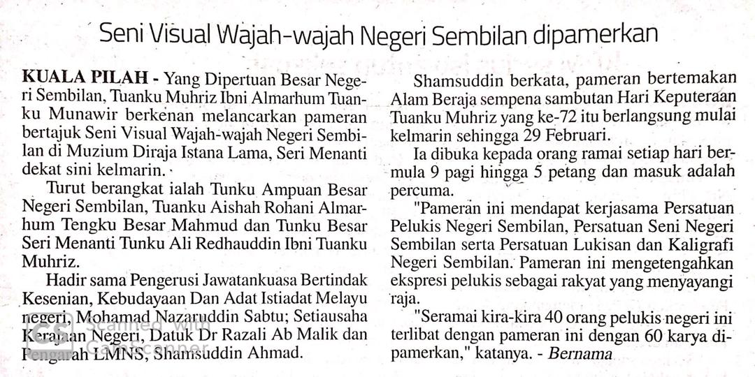 Tajuk :Seni Visual Wajah-Wajah Negeri Semkbilan dipamerkan