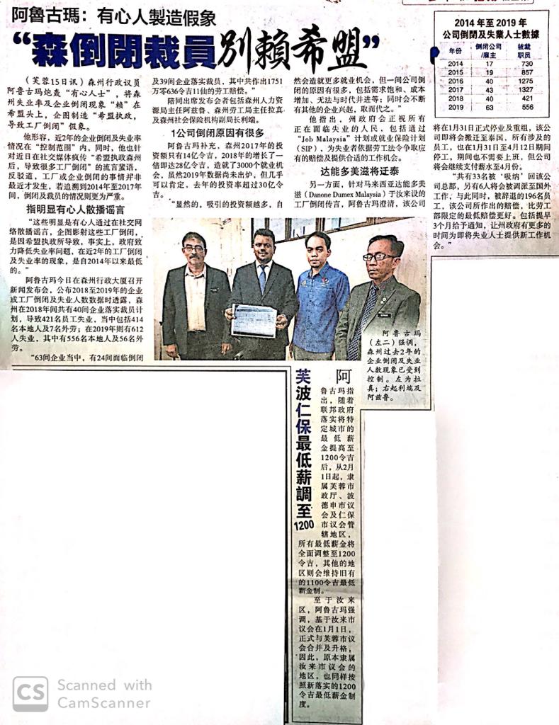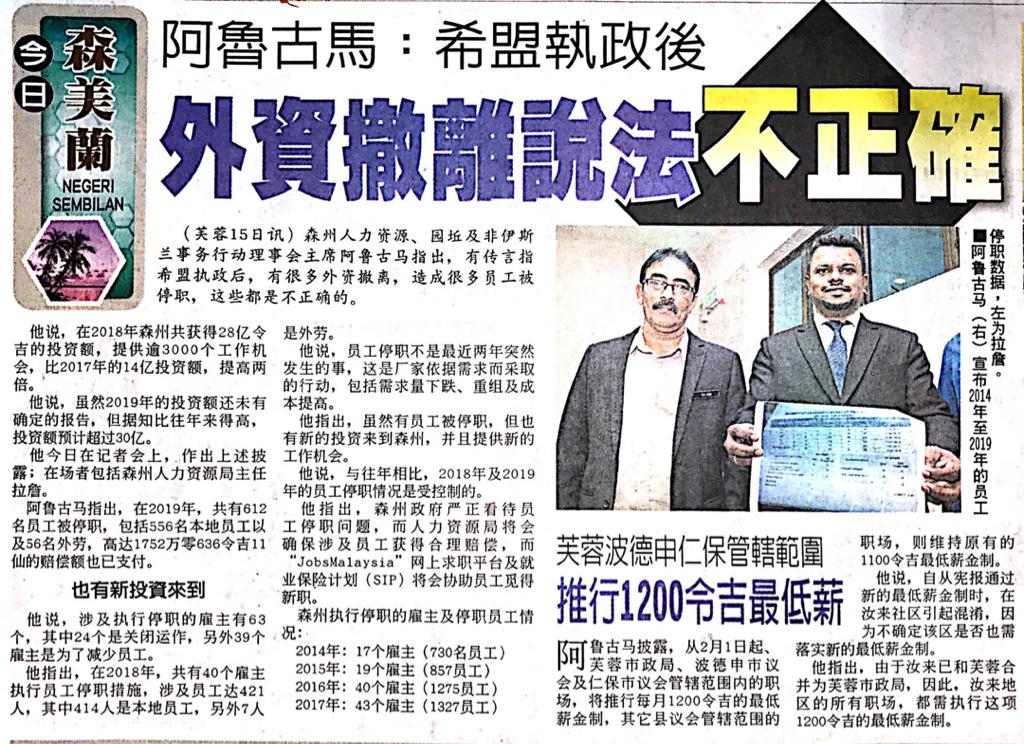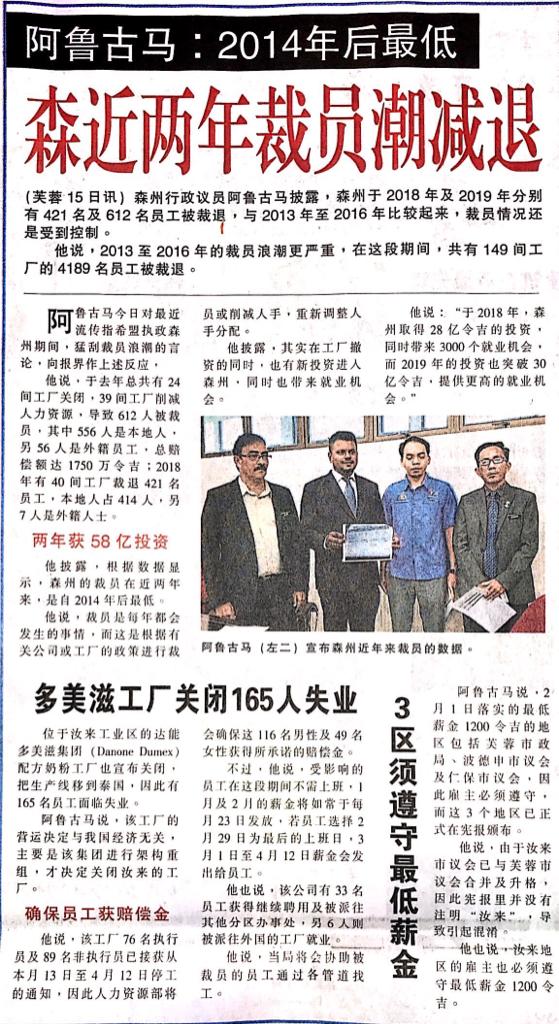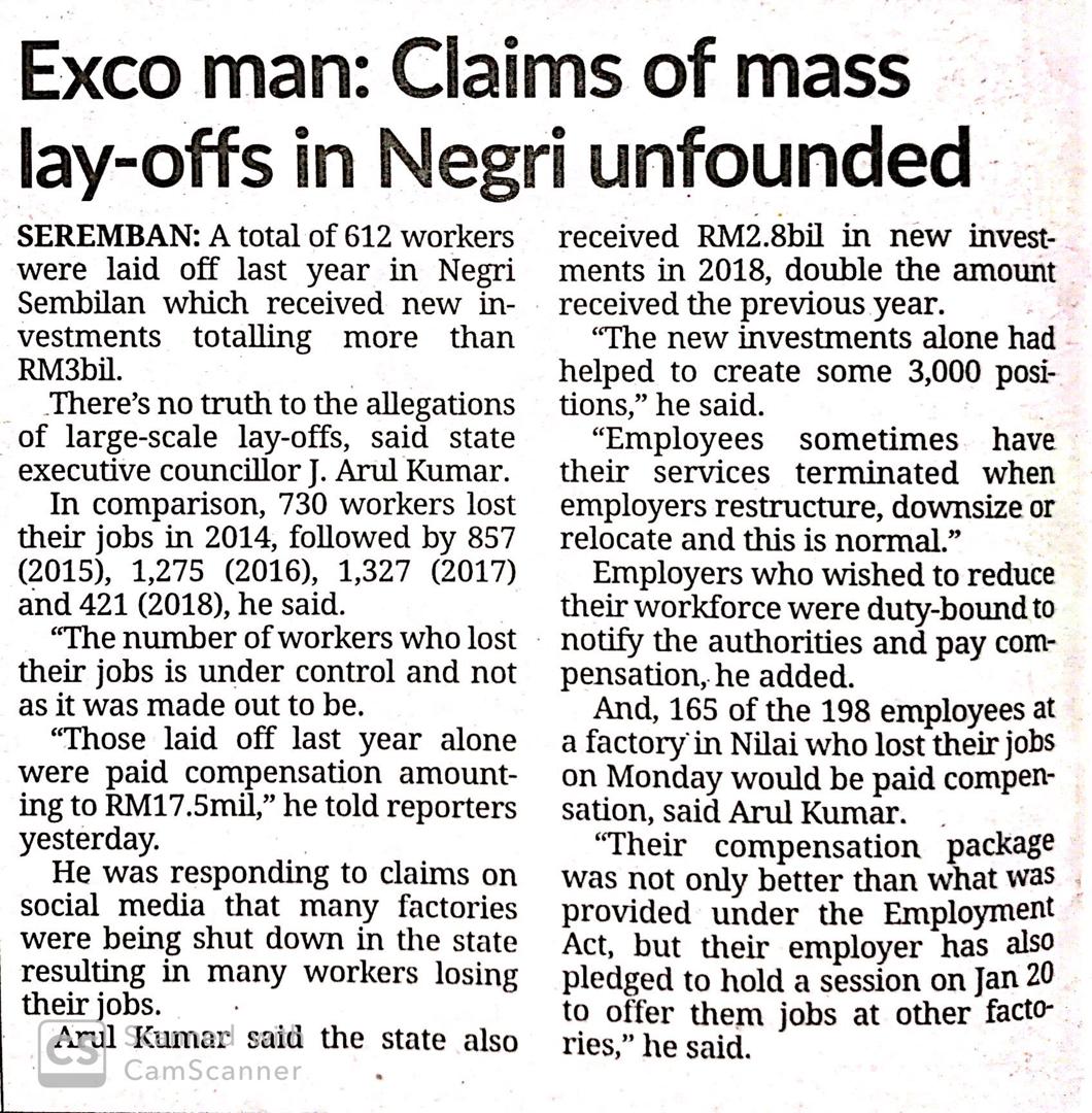 Tajuk :Exco-manClaims of mass lay-offs in Negri unfounded