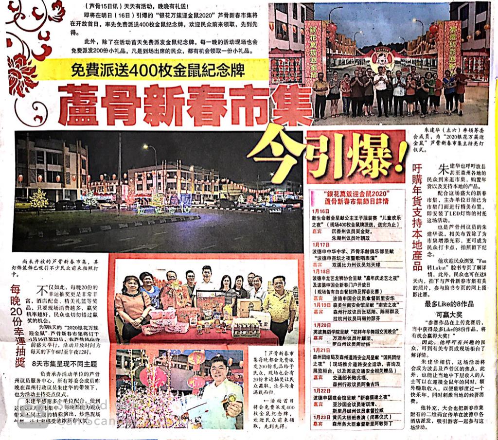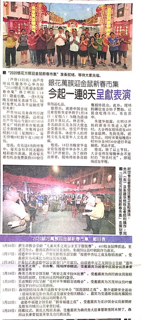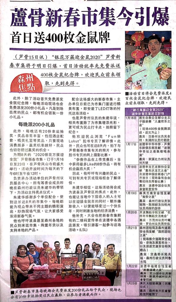 Tajuk :Lukut:YB Tuan Choo Ken Hwa mempromosikan Bazaar Tahun Baru Cina Lukut yang akan bermula pada 16 Januari 2020 sehingga 23 Januari 2020 dibuka pada 6 petang sehingga 12 malam.