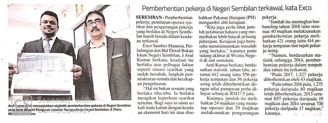 Tajuk :Pemberhentian pekerja di Negeri Sembilan terkawal, kata Exco