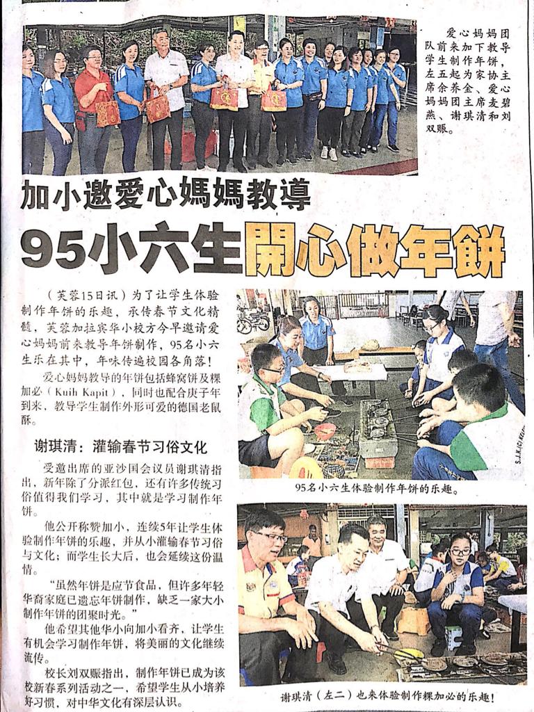 Tajuk :Seremban:YB Tuan Cha Kee Chin telah menghadiri program kebudayaan bersempena sambutan Tahun Baru Cina di SJKC Kelpin iaitu Pembuatan Kek Tahun Baru.