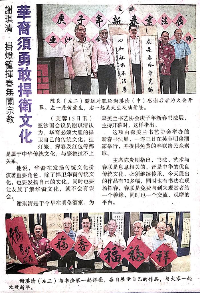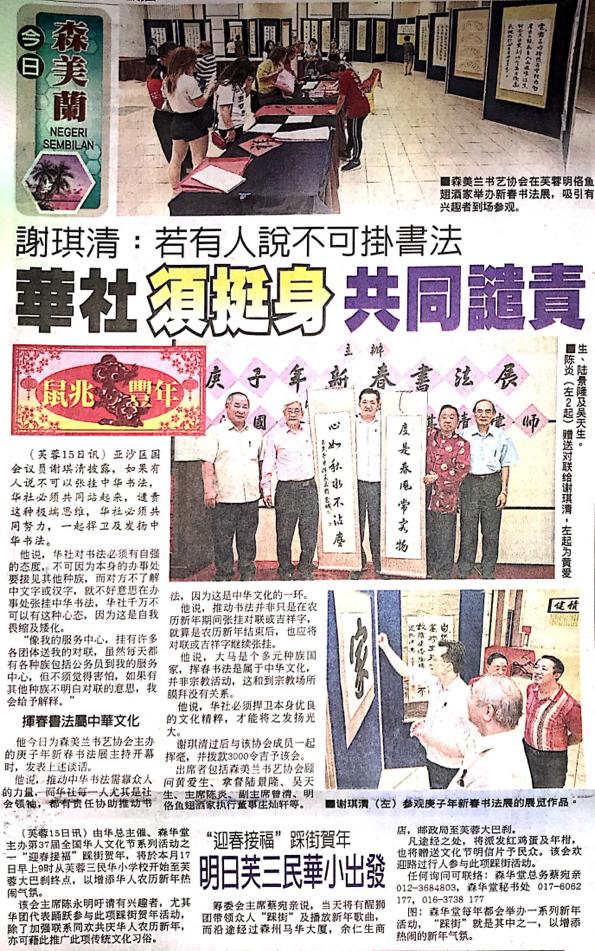 Tajuk :Seremban:YB Tuan Cha Kee Chin telah hadir dan merasmikan Pameran Seni Kaligrafi anjuran Persatuan Seni Tulis Cina Negeri Sembilan semalam.