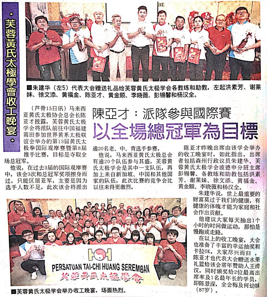 Tajuk :Seremban:YB Tuan Choo Ken Hwa telah menghadiri Majlis Persidangan Persatuan Tai-Chi Huang Seremban.