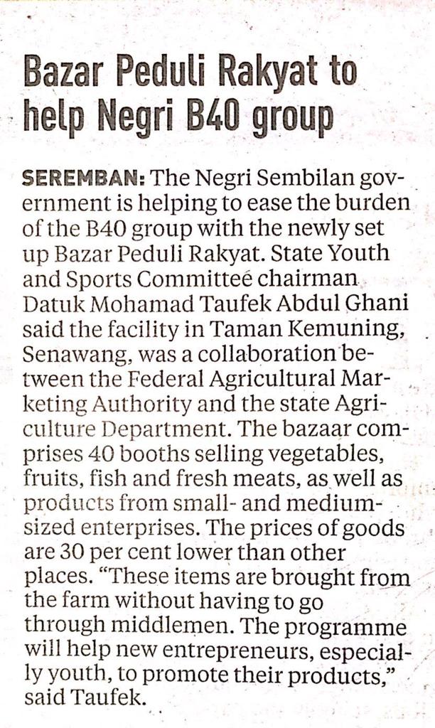 Tajuk :Bazar Peduli Rakyat to help Negri B40 group