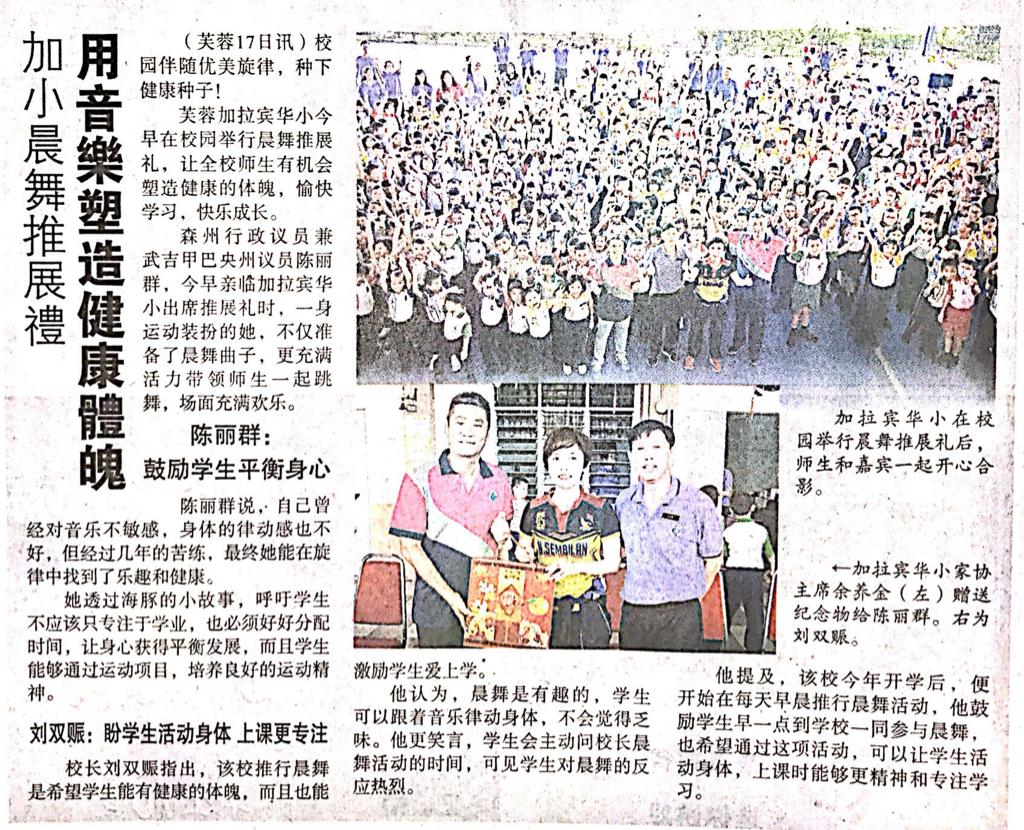 Tajuk :Seremban:YB Puan Nicole Tan Lee Koon telah menghadiri Majlis Pelancaran Program Senaman Pagi di SJKC Kelpin.