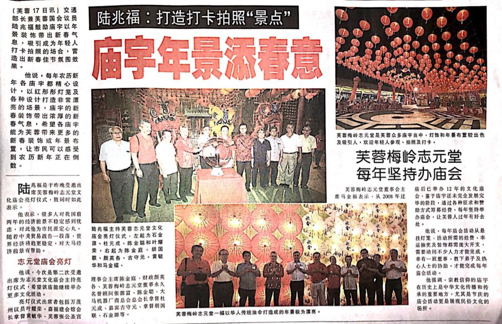Tajuk :Seremban:YB Tuan Loke Siew Fook dan juga YB Tuan Yap Yew Weng telah menghadiri Majlis Pembukaan Rasmi Penyalaan Lampu Hiasan Tang Long Sempena Tahun Baru Cina 2020 di Tokong San Kao Tong,Taman Bunga Blossom.