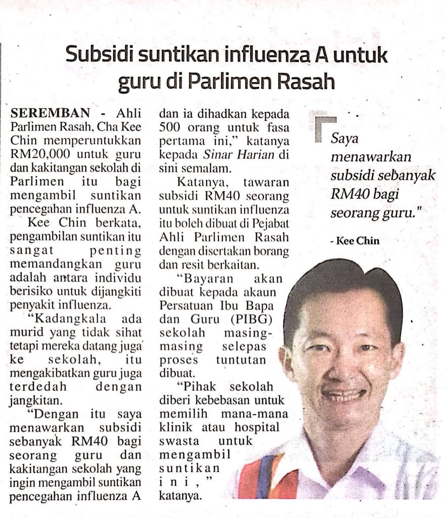 Tajuk :Subsidi suntikan influenza A untuk guru di Parlimen Rasah