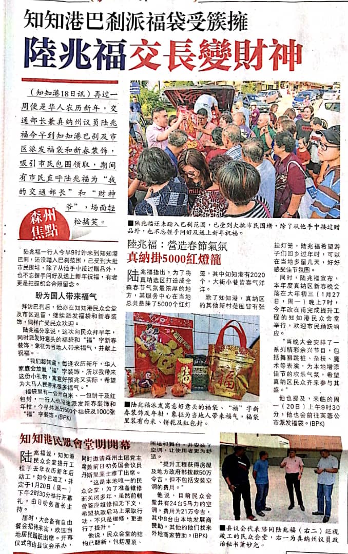 Tajuk :Jelebu: YB Tuan Loke Siew Fook mengedar perhiasan & hamper Tahun Baru Cina kepada orang ramai di Kampung Titi, Jelebu.