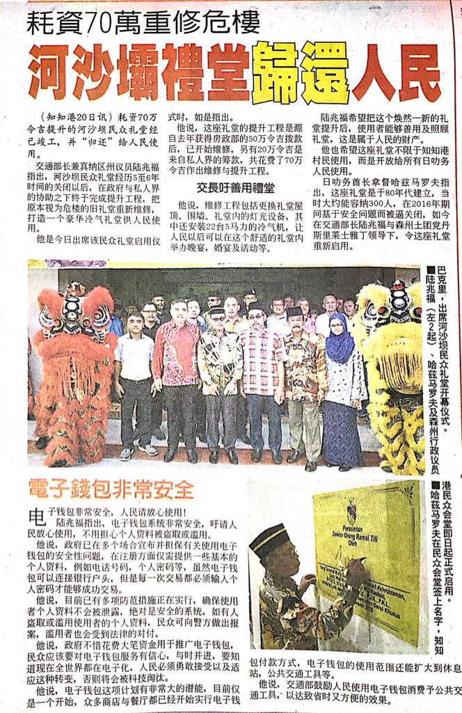 Tajuk :Jelebu:YB Tuan Loke Siew Fook dan juga YB Tuan Haji Bakri telah menghadiri Majlis Perasmian Dewan Orang Ramai Titi,Jelebu.Majlis tersebut dirasmikan oleh Dato Undang Lual Jelebu Yang Teramat Mulia Dato’ Mendika Menteri Akhirulzaman,Dato’ Haji Maarof Bin Haji Mat Rashad.