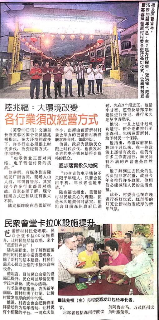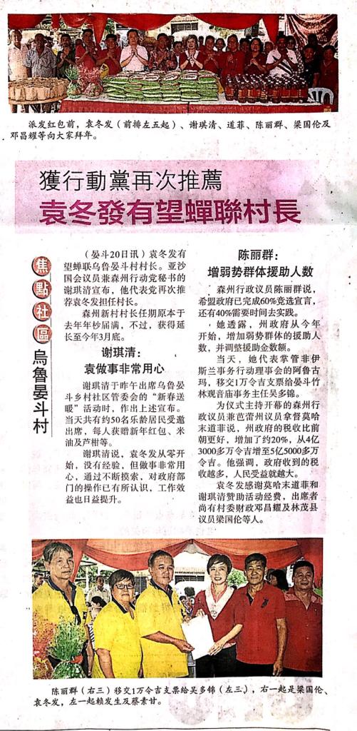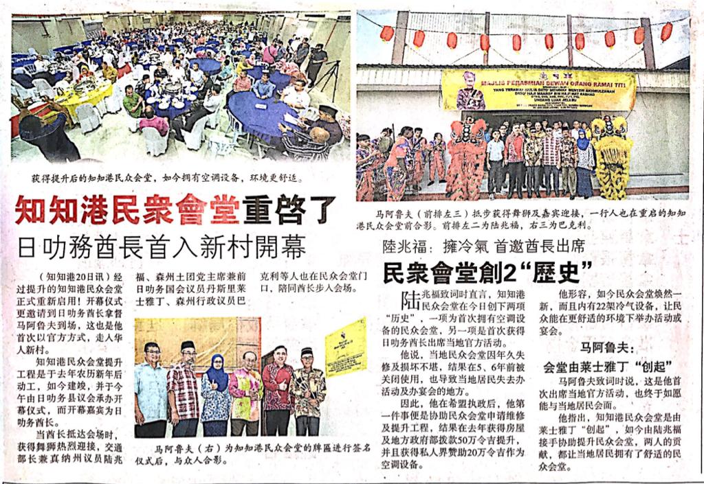 Tajuk :Rantau:YB Dato Haji Mohamad Taufek telah menghadiri Majlis Penyerahan Angpao dan Sumbangan kepada warga emas sempena menjelang perayaan Tahun Baru Cina 2020 anjuran MPKK Kampung Ulu Rantau.Turut hadir bersama YB Puan Nicole Tan Lee Koon dan juga YB Tuan Cha Kee Chin.