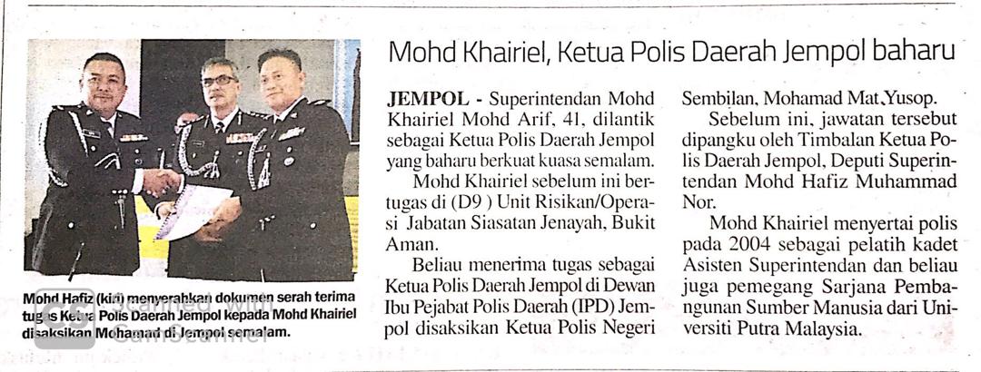 Tajuk :Mohd Khairiel, Ketua Polis Daerah Jempol baharu