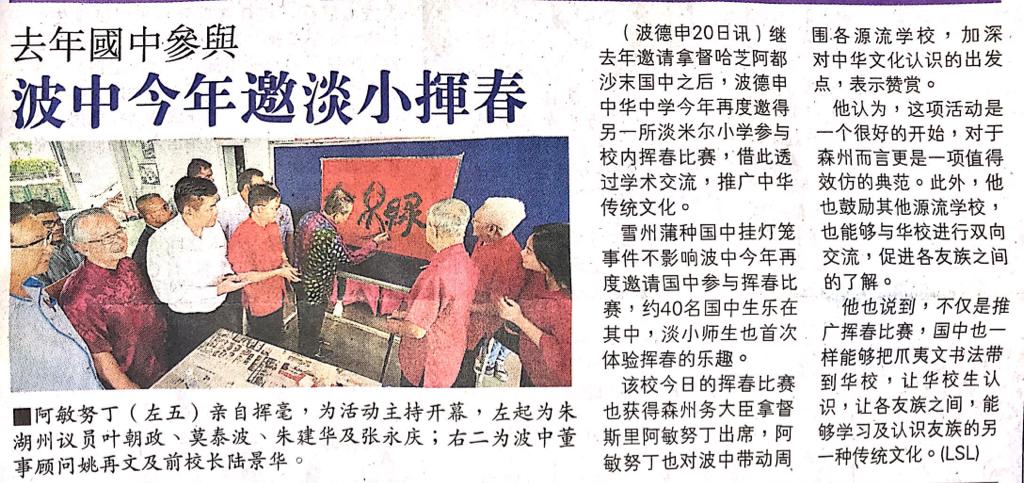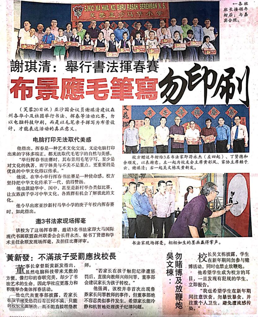 Tajuk :Seremban:YB Tuan Cha Kee Chin telah merasmikan Pertandingan Kaligrafi anjuran SJKC Ma Hwa,Kampung Baru Rasah.