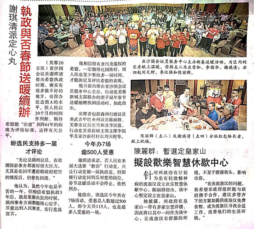 Tajuk :Seremban:YB Puan Mary Josephine Prittam Singh telah menghadiri majlis penyampaian sumbangan Tahun Baru Cina untuk warga emas di Rantau anjuran Kelab Sosial Pedagang Muda NS.