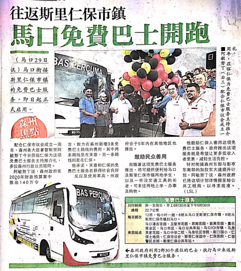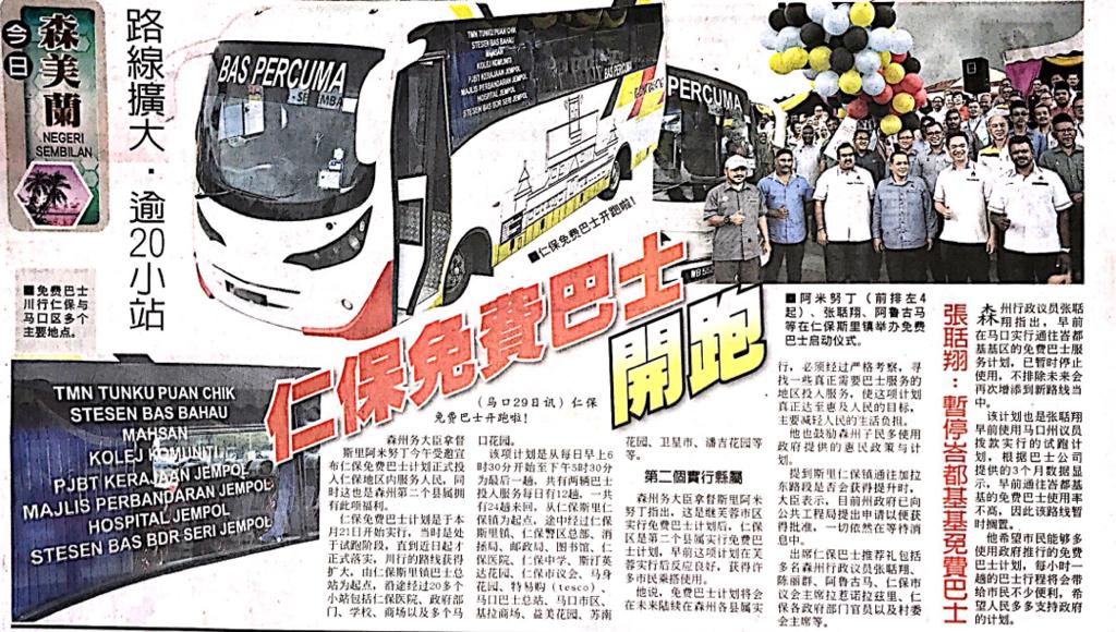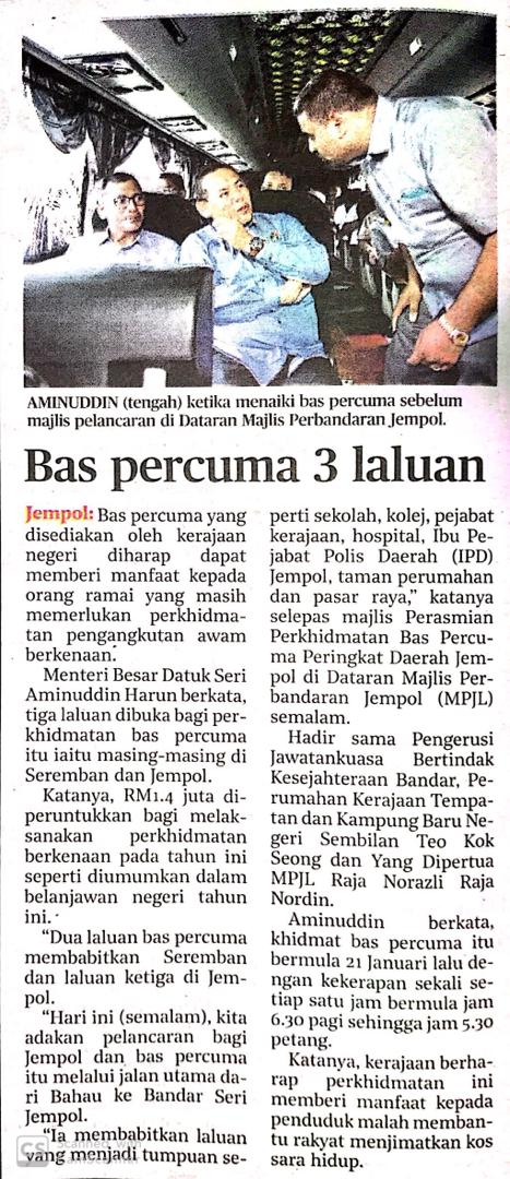 Tajuk :Perkhidmatan Bas Percuma Khidmat Rakyat di Daerah Jempol telah bermula.