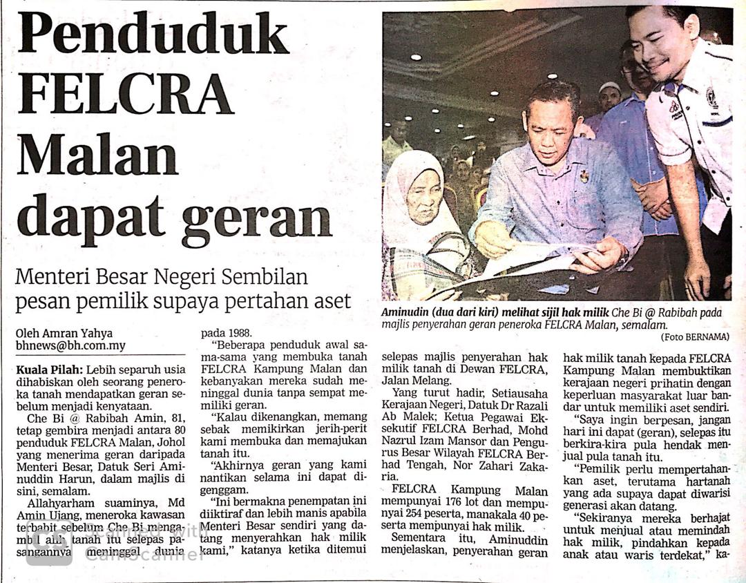 Tajuk :Penduduk FELCRA Malan dapat geran