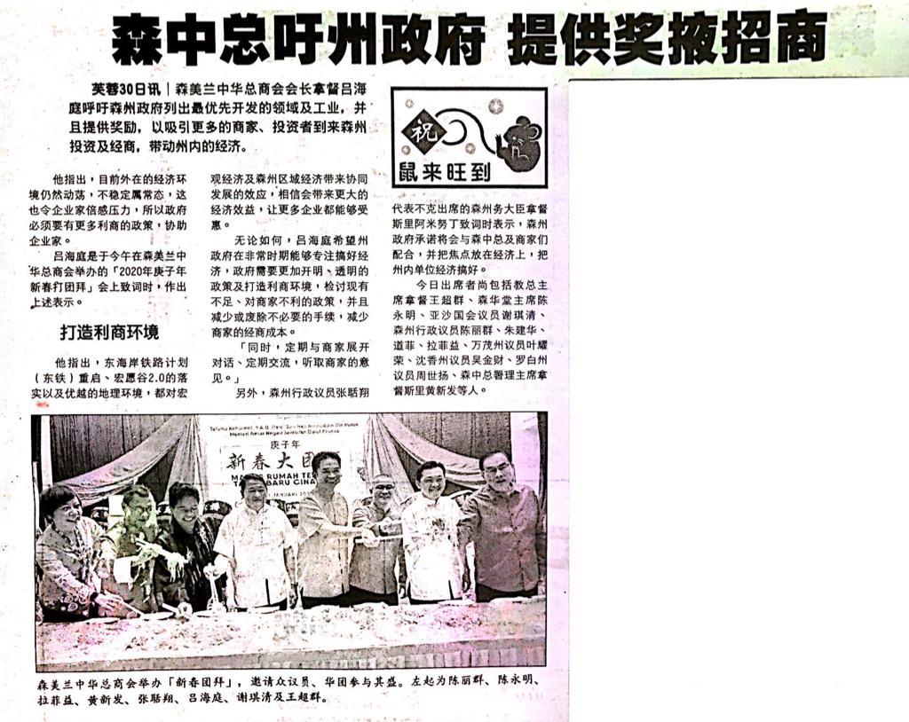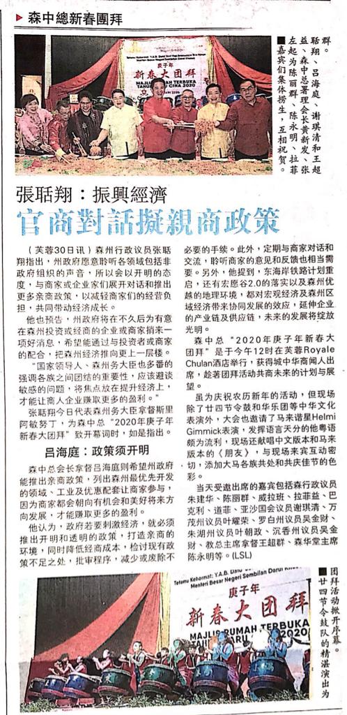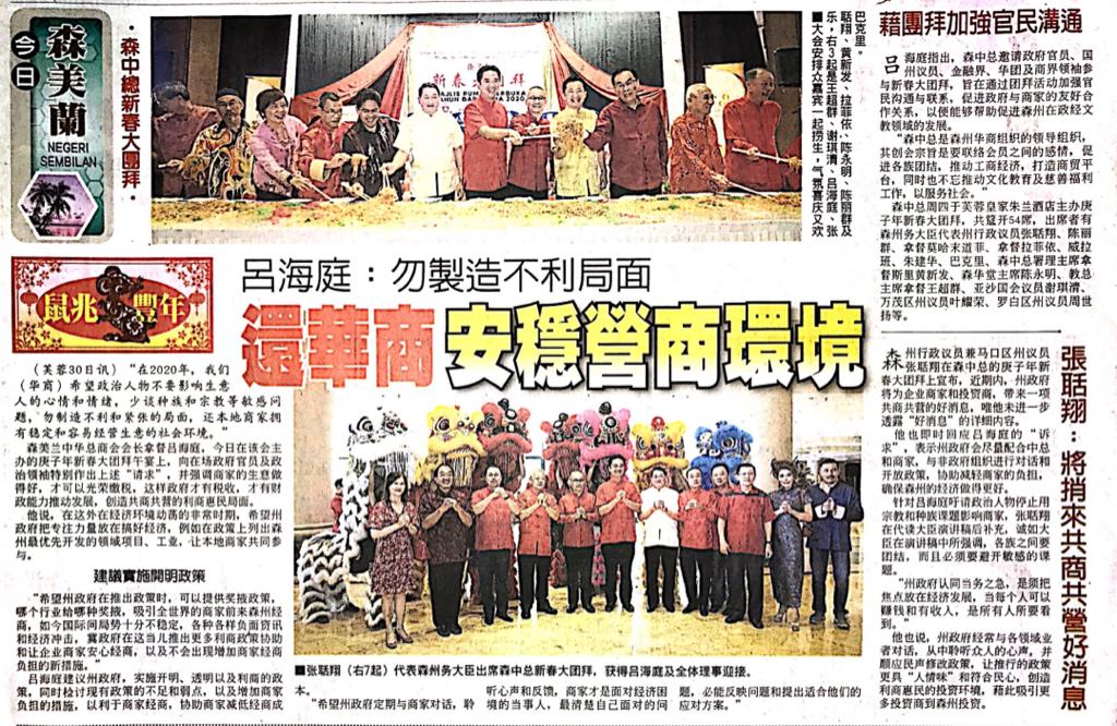Tajuk :Dewan Perniagaan dan Perindustrian Cina Negeri Sembilan menganjurkan Majlis Rumah Terbuka Sambutan Tahun Baru Cina.