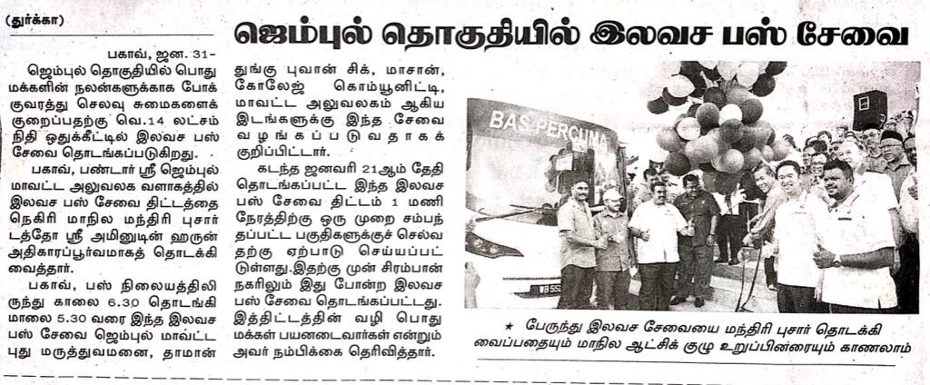 Tajuk :Perkhidmatan Bas Percuma Khidmat Rakyat di Daerah Jempol bermula.