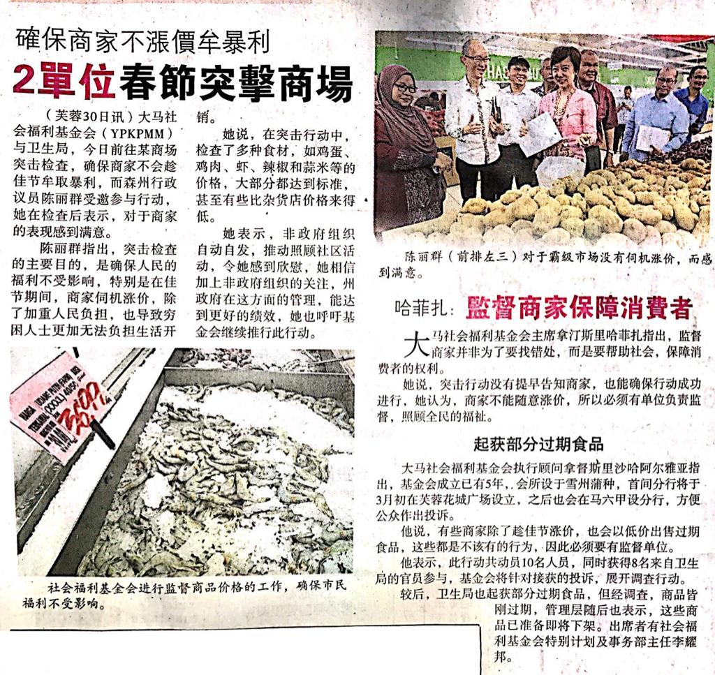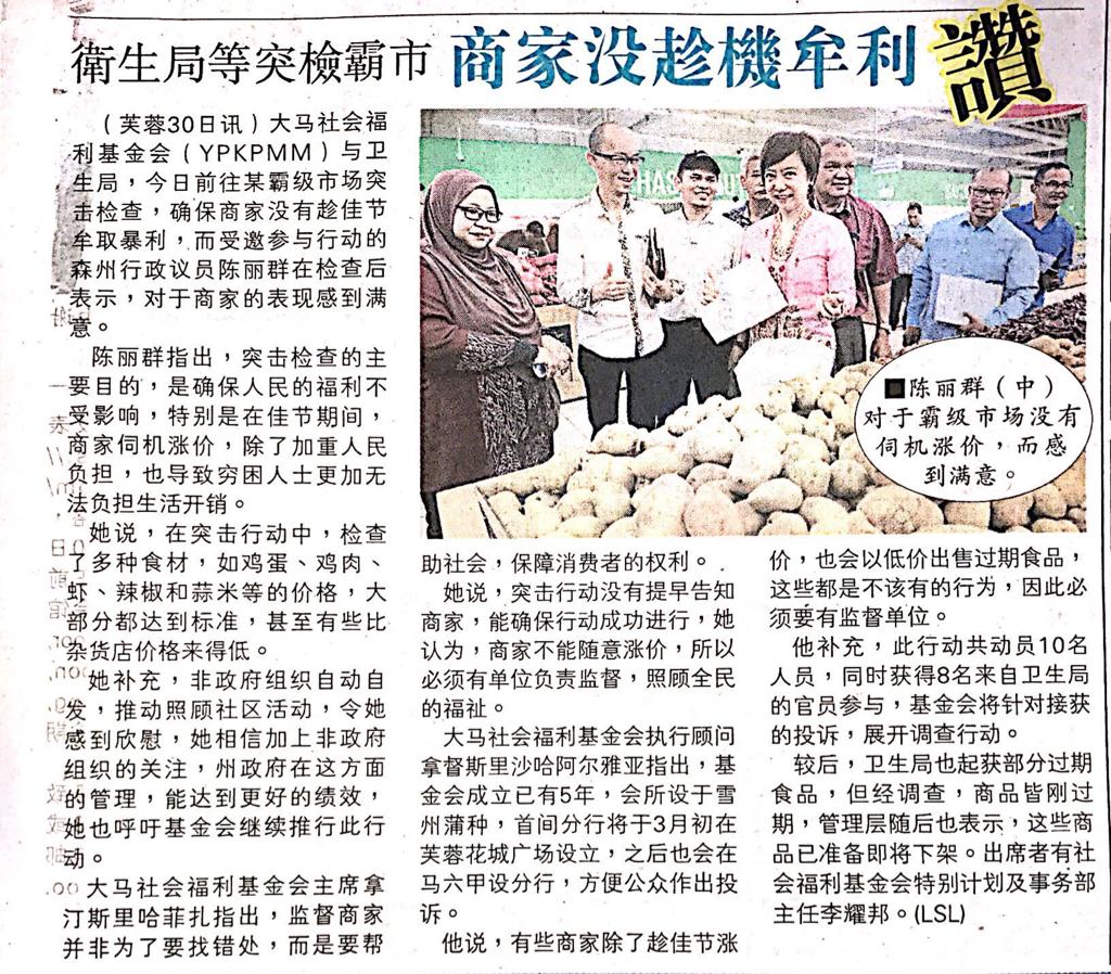 Tajuk :Seremban:YB Puan Nicole Tan Lee Koon telah turun melaksanakan Operasi Pemantauan Skim Kawalan Harga bersama Yayasan Perlindungan Kebajikan Pengguna Masyarakat Malaysi di Giant Senawang.