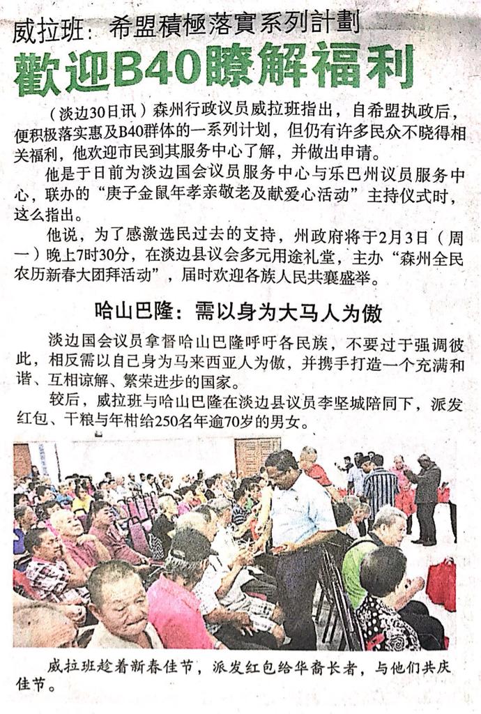 Tajuk :Seremban:YB Tuan Cha Kee Chin telah hadir ke Majlis Sambutan Tahun Baru Cina SJKC Kampung Baru Rahang.