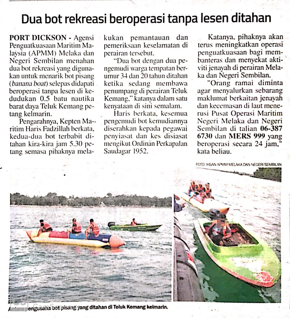Tajuk :Dua bot rekreasi beroperasi tanpa lesen ditahan