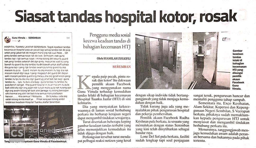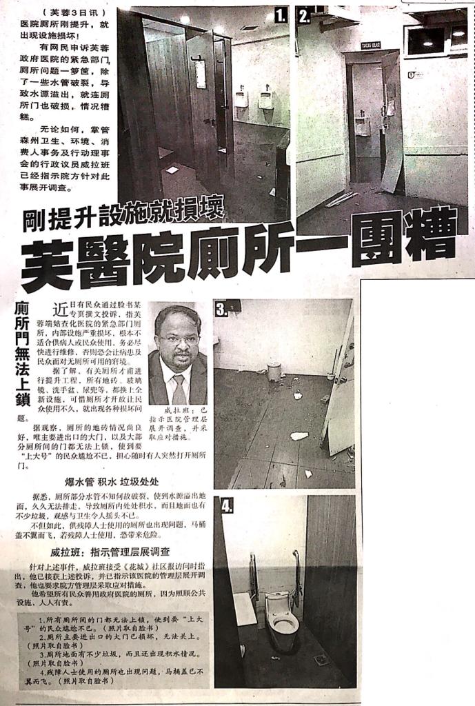 Tajuk :Kemudahan tandas awam di hospital rosak.