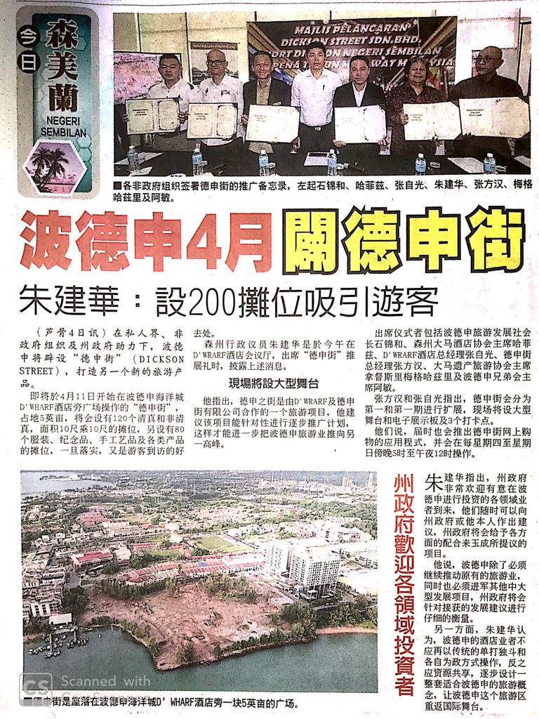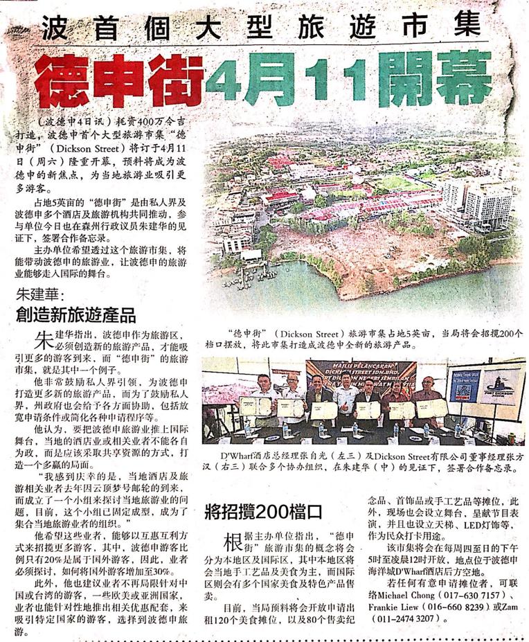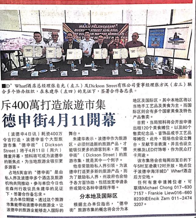 Tajuk :Port Dickson menubuhkan Dickson Street bagi meningkatkan industri pelancongan pada bulan April tahun ini.