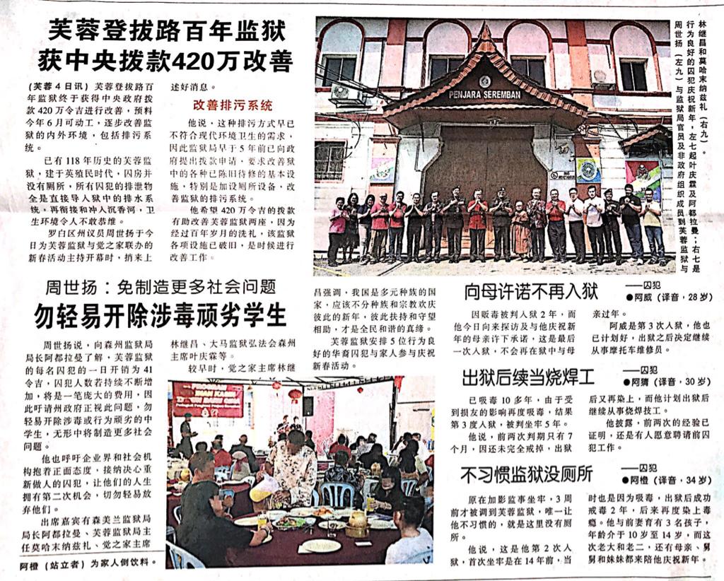 Tajuk :Penjara Seremban menerima pembiayaian kerajaan sebanyak 4.2 juta.