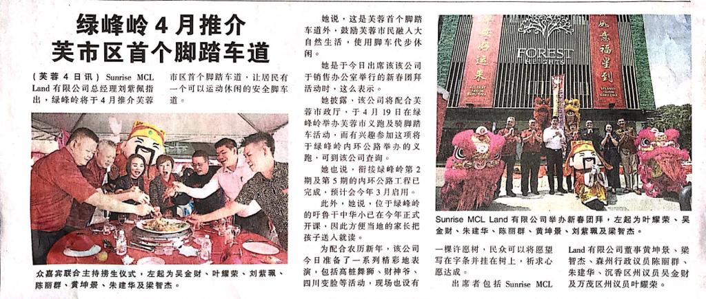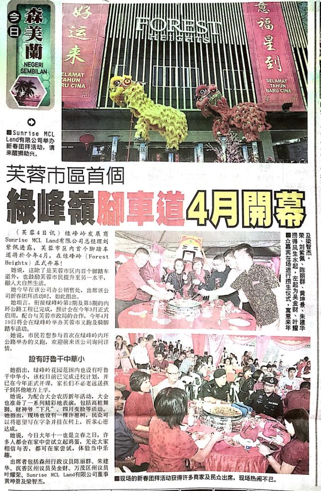 Tajuk :Seremban:YB Puan Nicole Tan Lee Koon bersama YB Tuan Teo Kok Seong,YB Tuan Choo Ken Hwa,YB Tuan Ng Chin Tsai dan YB Yap Yew Weng telah menghadiri Majlis Jamuan Perayaan Tahun Baru Cina Sunrise MCL Land di Precinct 1 Forest Height.