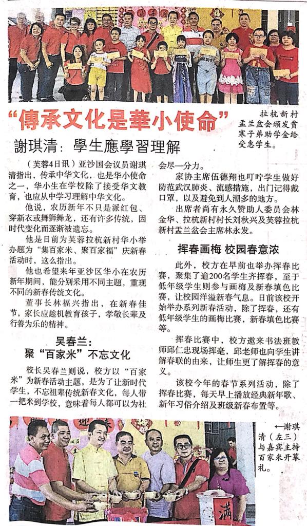 Tajuk :Seremban:YB Tuan Cha Kee Chin telah hadir ke Majlis Sambutan Tahun Baru Cina SJKC Kampung Baru Rahang.