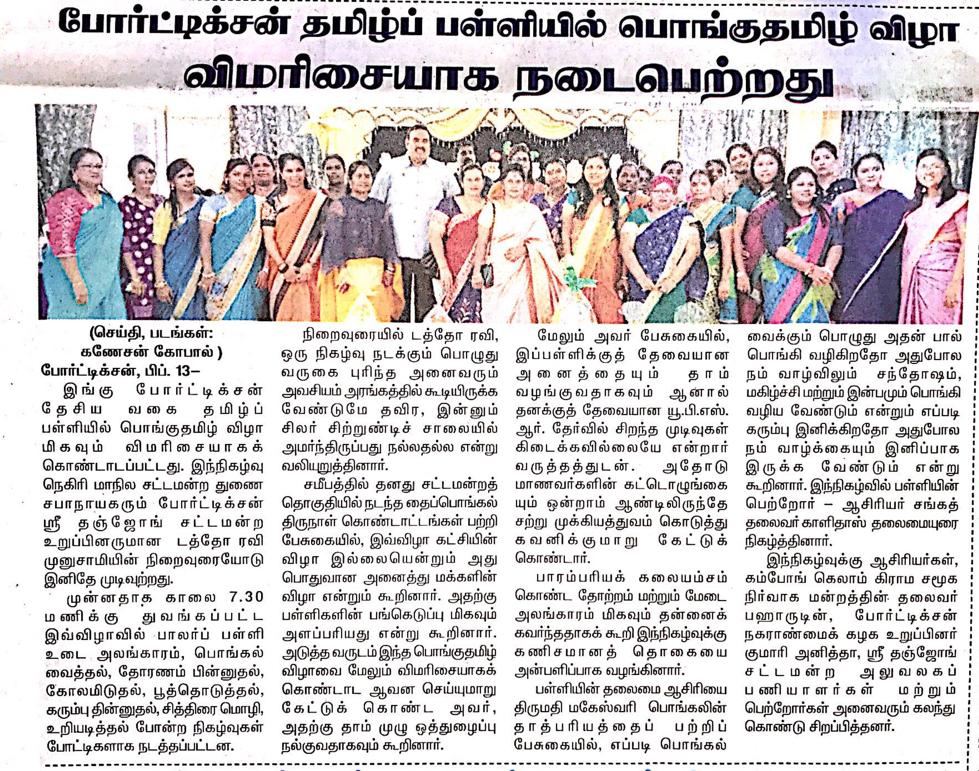Tajuk :Port Dickson:YB Dato Ravi Munusamy telah memenuhi jemputan dari SJKT.Port Dickson bagi merasmikan Majlis Penutup dan Penyampaian Hadiah Pertandingan Kebudayaan sempena Perayaan Pesta Ponggal.