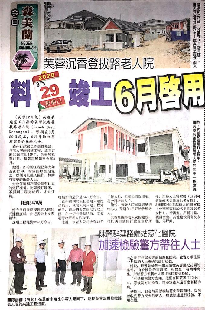 Tajuk :Rumah Seri Kenangan Seremban bakal dibuka pada akhir bulan Jun 2020.