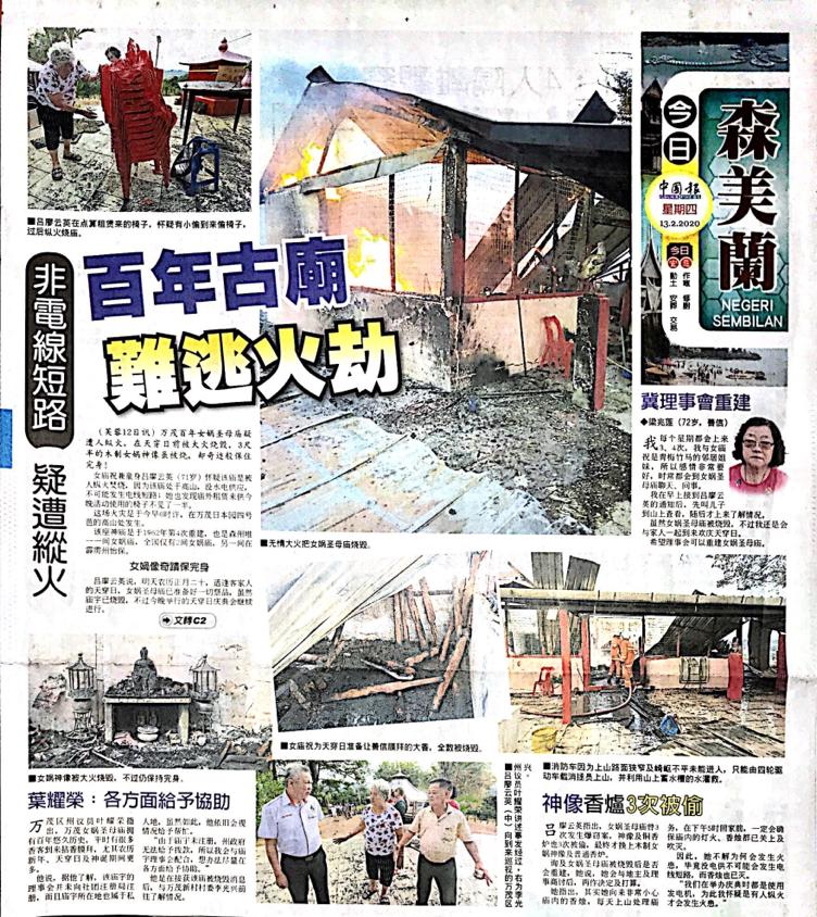 Tajuk :Seremban:YB Tuan Yap Yew Weng telah turun meninjau ke sebuah tokong yang terbakar semalam.