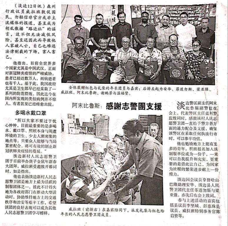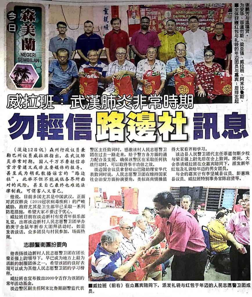 Tajuk :Tampin:YB Tuan Veerapan menghadiri Majlis Sambutan Tahun Baru Cina anjuran Pasukan Pengawal Sukarelawan Rakyat Kampung Baru Tampin.