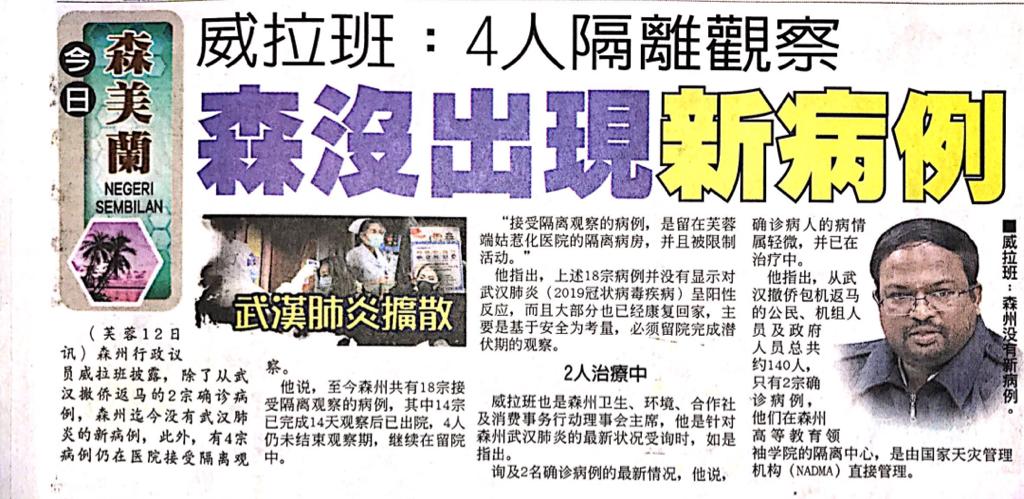 Tajuk :Wabak Koronavirus:4 kes masih dalam pemerhatian.