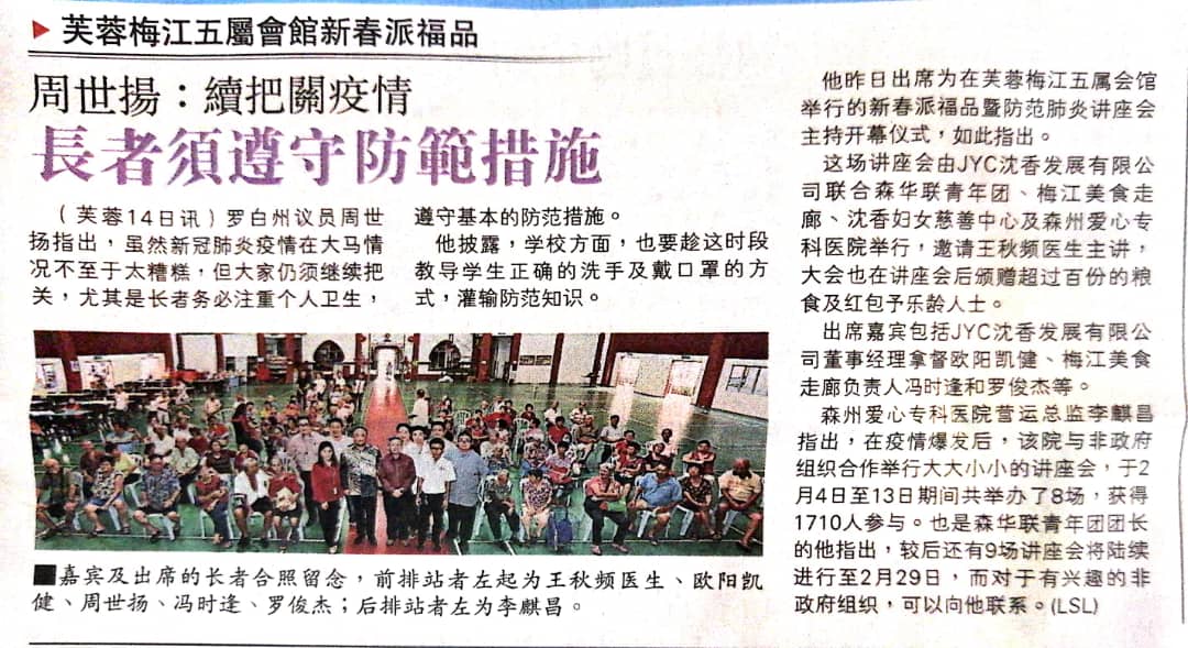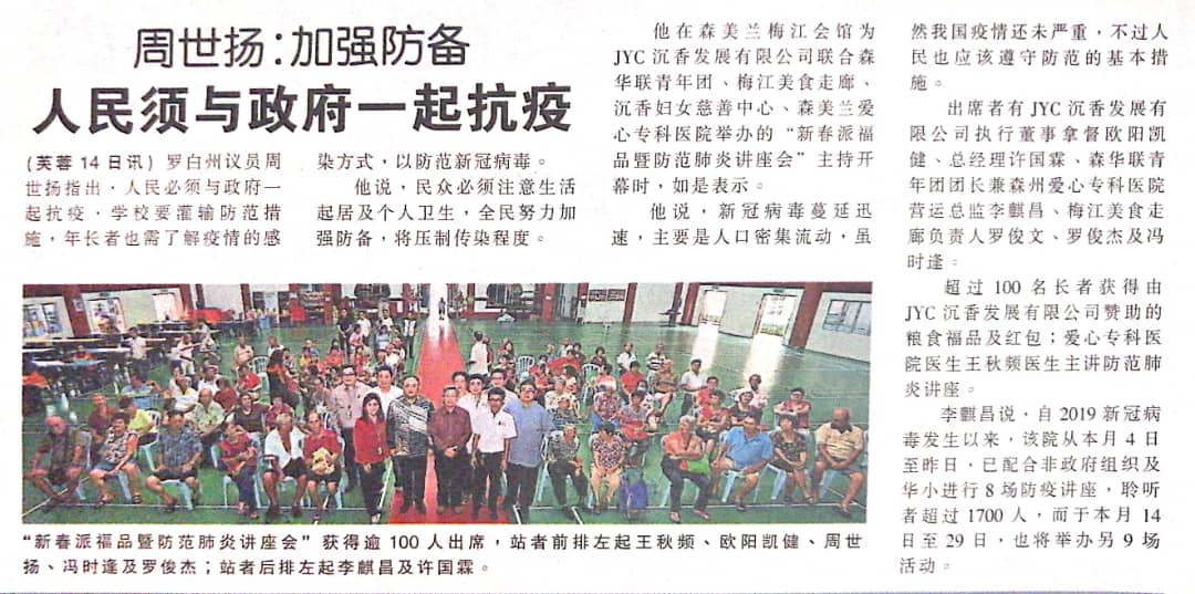 Tajuk :ADUN Lobak, YB Tuan Chew Seh Yong berkata orang ramai perlu bekerjasama dengan kerajaan bagi membendung wabak dari disebarkan ketika merasmikan Produk dan Seminar Pencegahan Pneumonia.