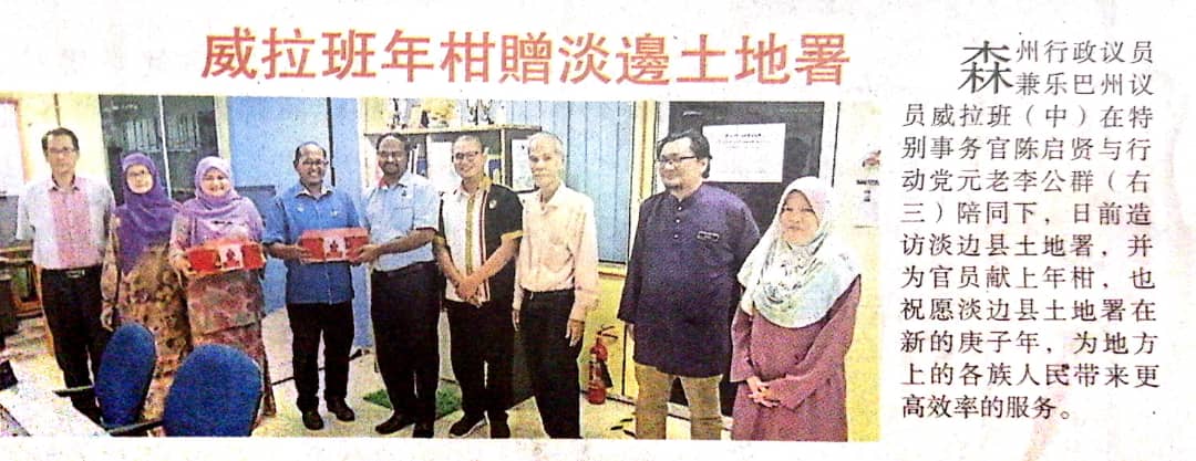 Tajuk :YB Tuan Veerapan a/l Superamaniam membuat kunjungan ke Pejabat Daerah dan Tanah Tampin. Beliau berharap agar pegawai dan kakitangan di Pejabat Daerah dan Tanah Tampin untuk memberi perkhidmatan yang lebih cekap kepada rakyat.