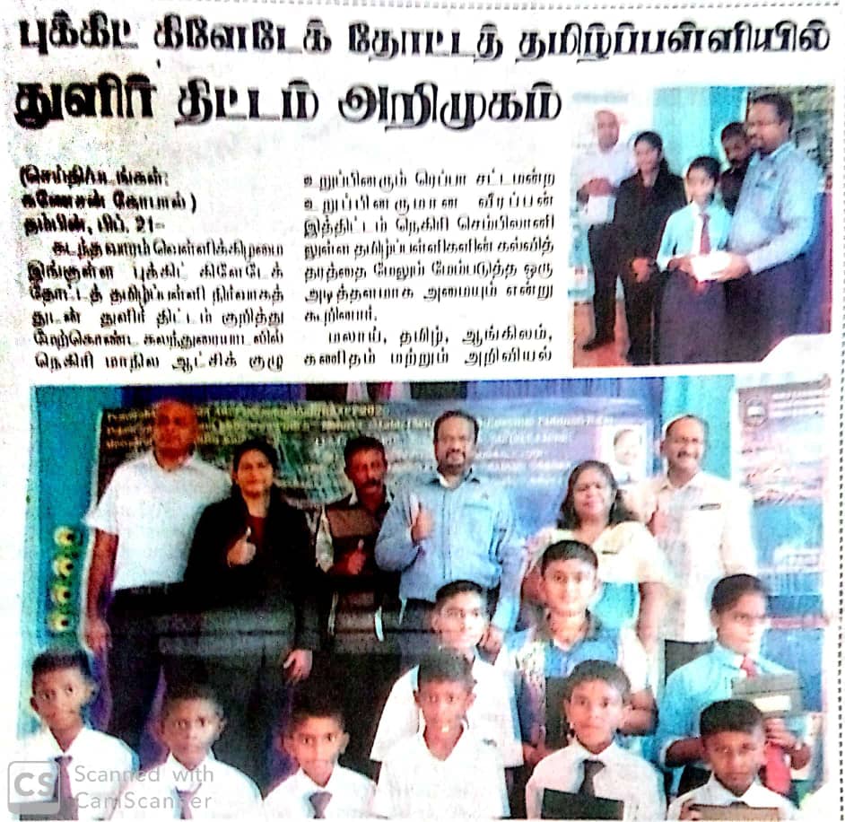 Tajuk :Gemas- Sekolah Jenis Kebangsaan Tamil (SJKT) Ladang Bukit Keledek, Gemencheh telah mengambil inisiatif melaksanakan Program Thulir bagi meningkatkan mutu pembelajaran di sekolah tersebut.